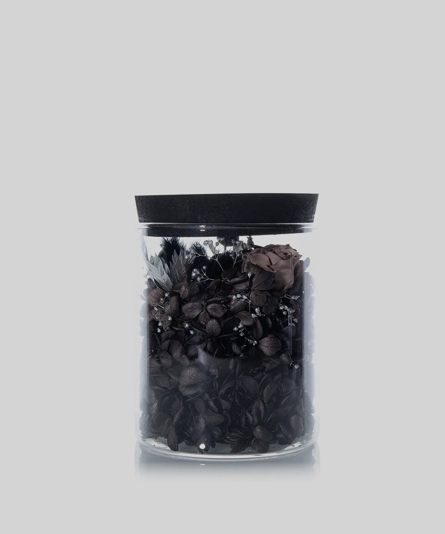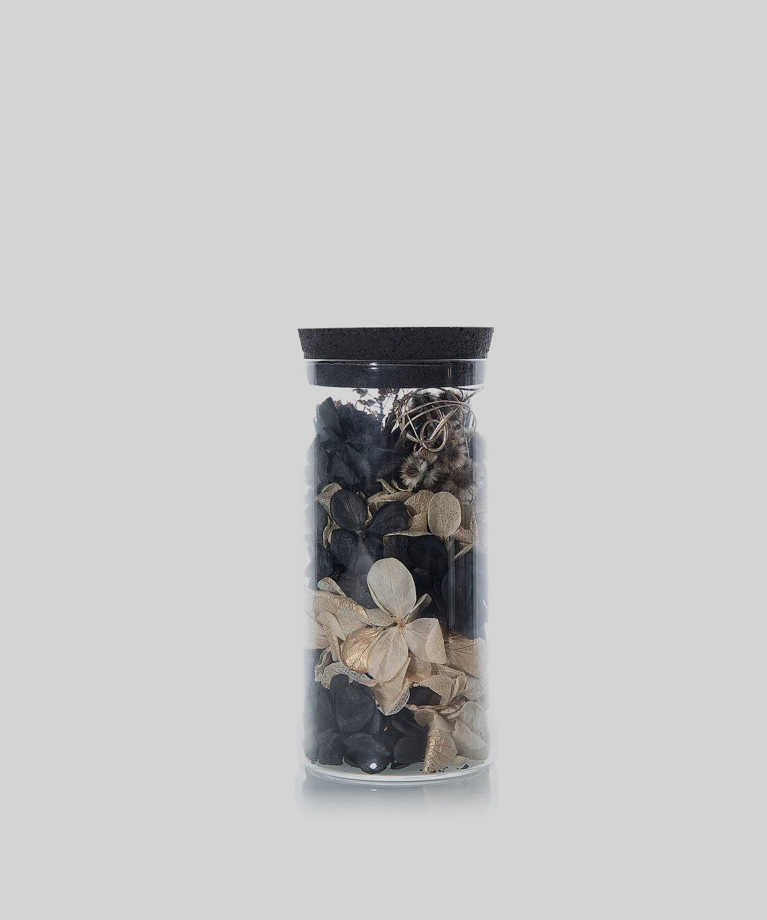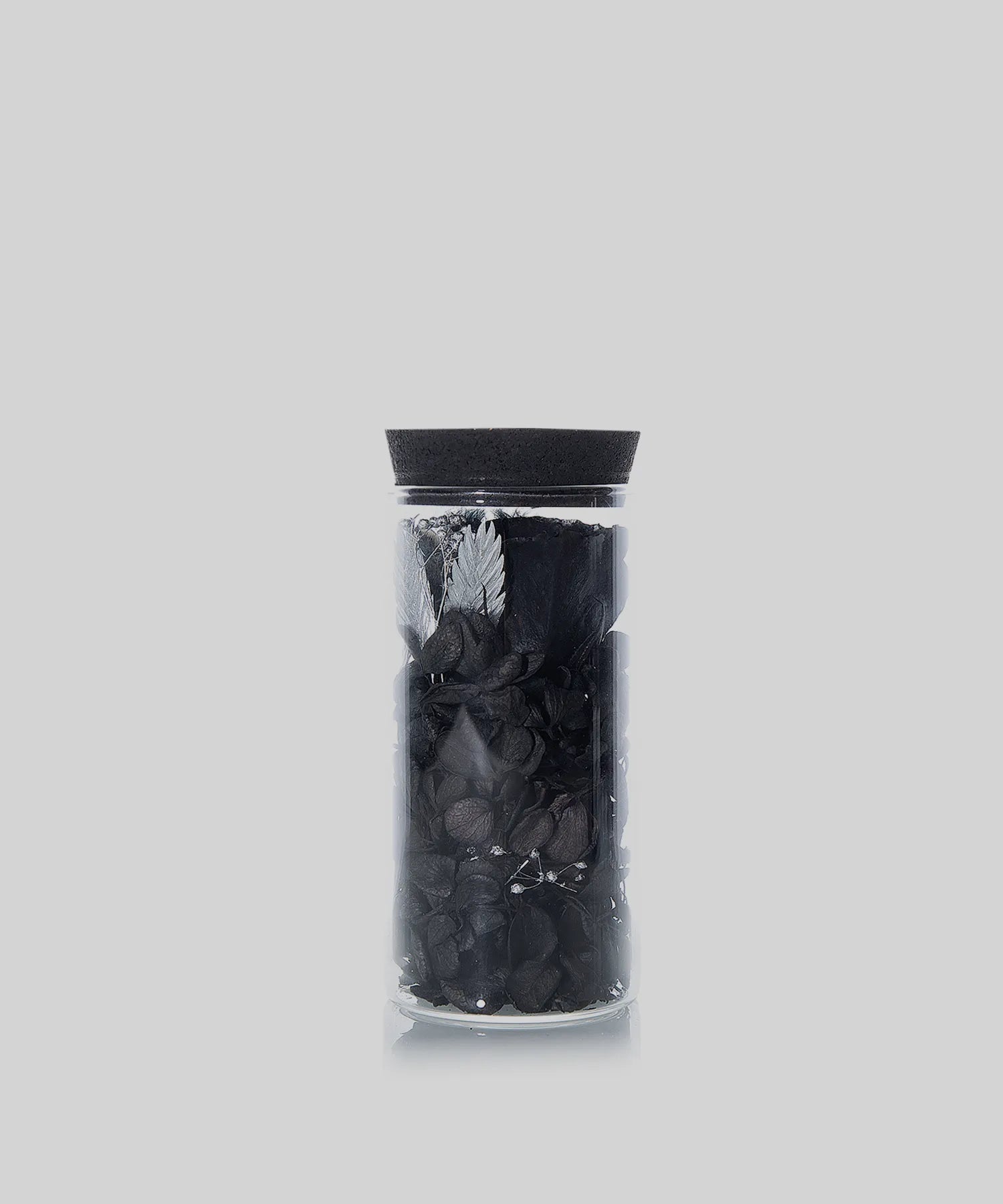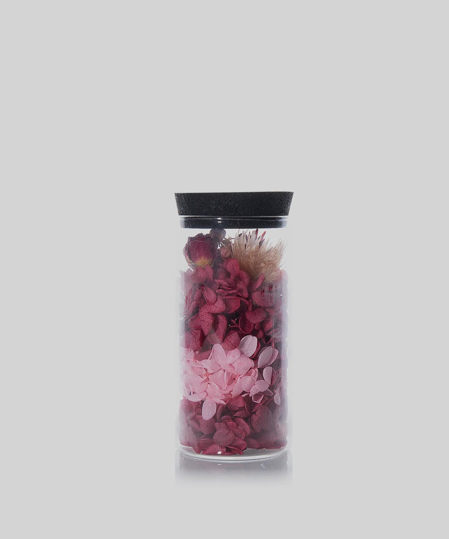 デザイナーの旅の記憶を閉じ込めたプリザーブドフラワーグラスに、情景を香りで描き出すルームフレグランスオイルを添えた特別なセット。