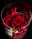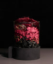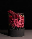 不定期で変わるプリザーブドフラワーとドライフラワーに、それぞれの素材に最適な香りを丁寧にまとわせ、香りが落ち着いたタイミングで、フラワーアーティストが一つひとつ手作業でグラスへと仕上げます。360度どの角度から見ても完成された色彩と立体感、そこから静かに広がる香りが、空間の質を変える。
