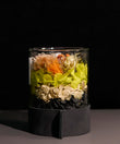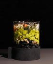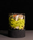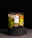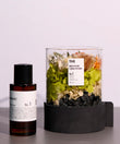 不定期で変わるプリザーブドフラワーとドライフラワーに、それぞれの素材に最適な香りを丁寧にまとわせ、香りが落ち着いたタイミングで、フラワーアーティストが一つひとつ手作業でグラスへと仕上げます。360度どの角度から見ても完成された色彩と立体感、そこから静かに広がる香りが、空間の質を変える。