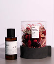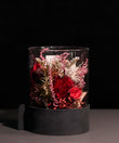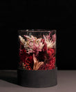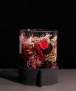 不定期で変わるプリザーブドフラワーとドライフラワーに、それぞれの素材に最適な香りを丁寧にまとわせ、香りが落ち着いたタイミングで、フラワーアーティストが一つひとつ手作業でグラスへと仕上げます。360度どの角度から見ても完成された色彩と立体感、そこから静かに広がる香りが、空間の質を変える。
