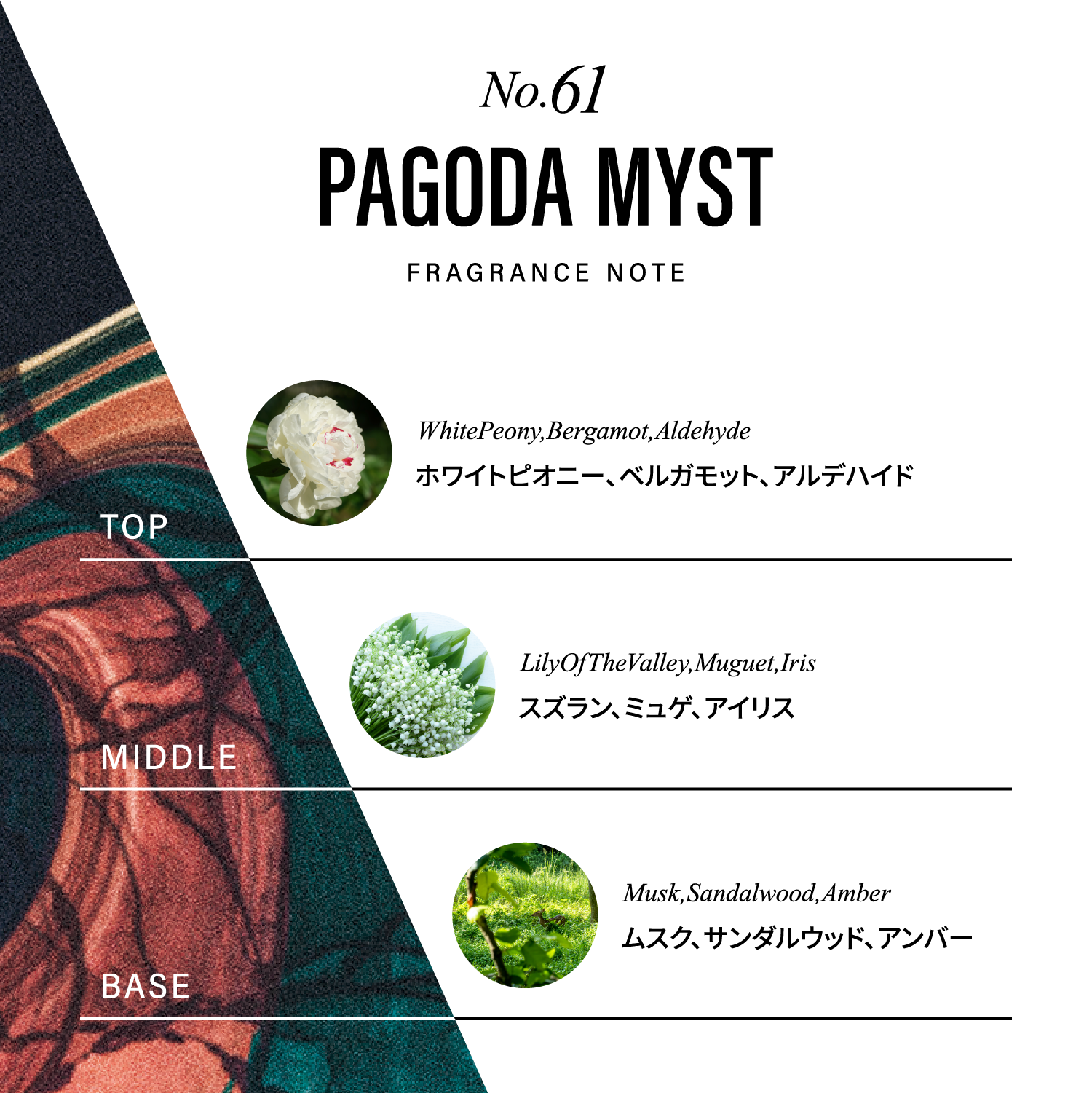 サイプレスとレモングラスが清々しく香り、精神を静めるようなトップノートノートから始まります。そこに、サンダルウッドの神秘的なぬくもりが加わり、空気をやさしく満たします。やがて、アンバーとムスクが肌に溶け込むように広がり、内面と向き合うような深い静けさへと導きます。