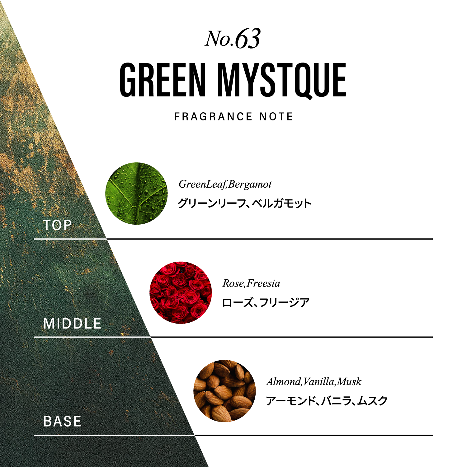 みずみずしい緑と柑橘の爽やかさが重なり、清潔感ある印象を演出。