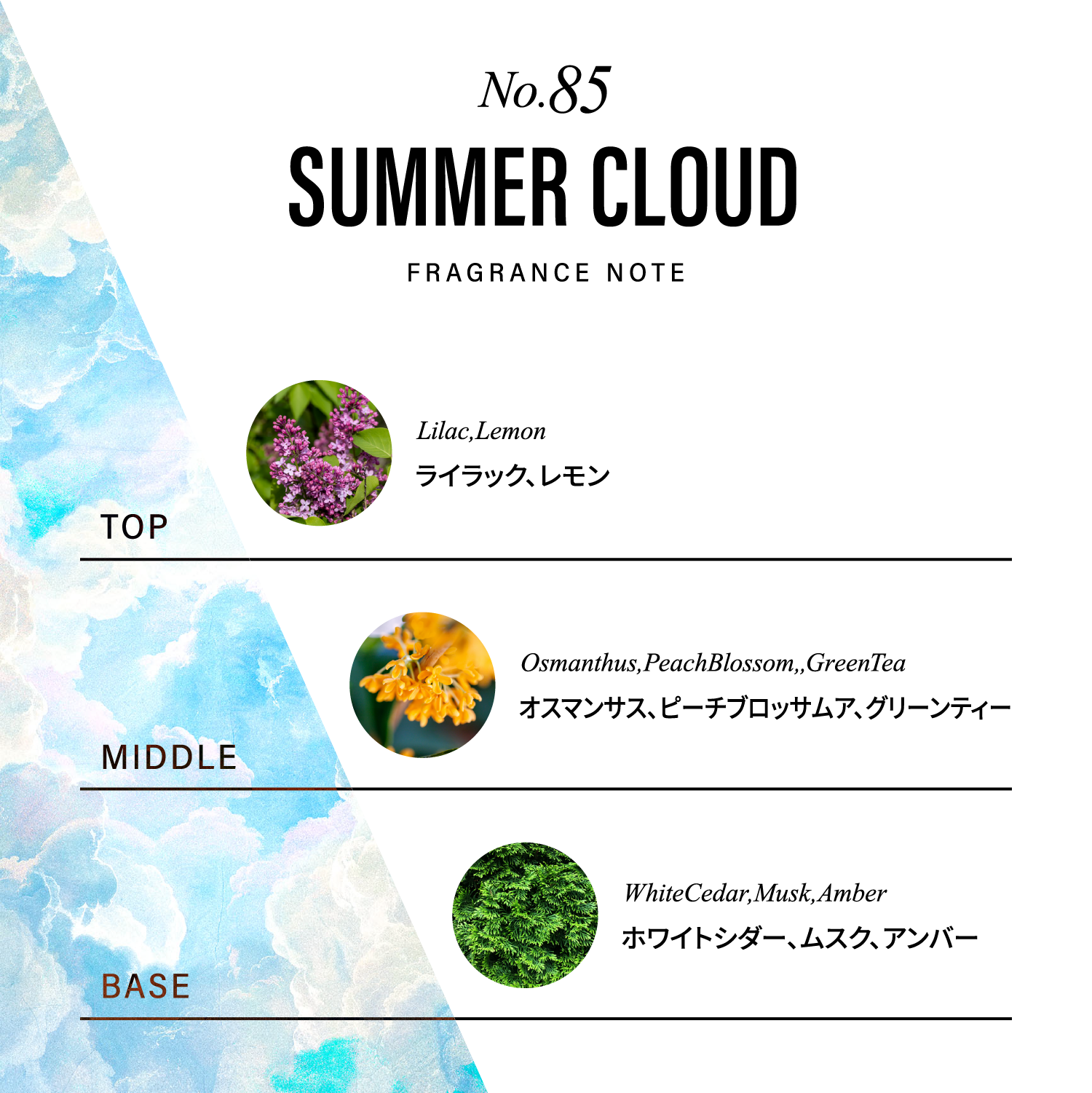 透明感のある若草のようなグリーンフローラルと、レモンのすがすがしい爽快感が広がる。