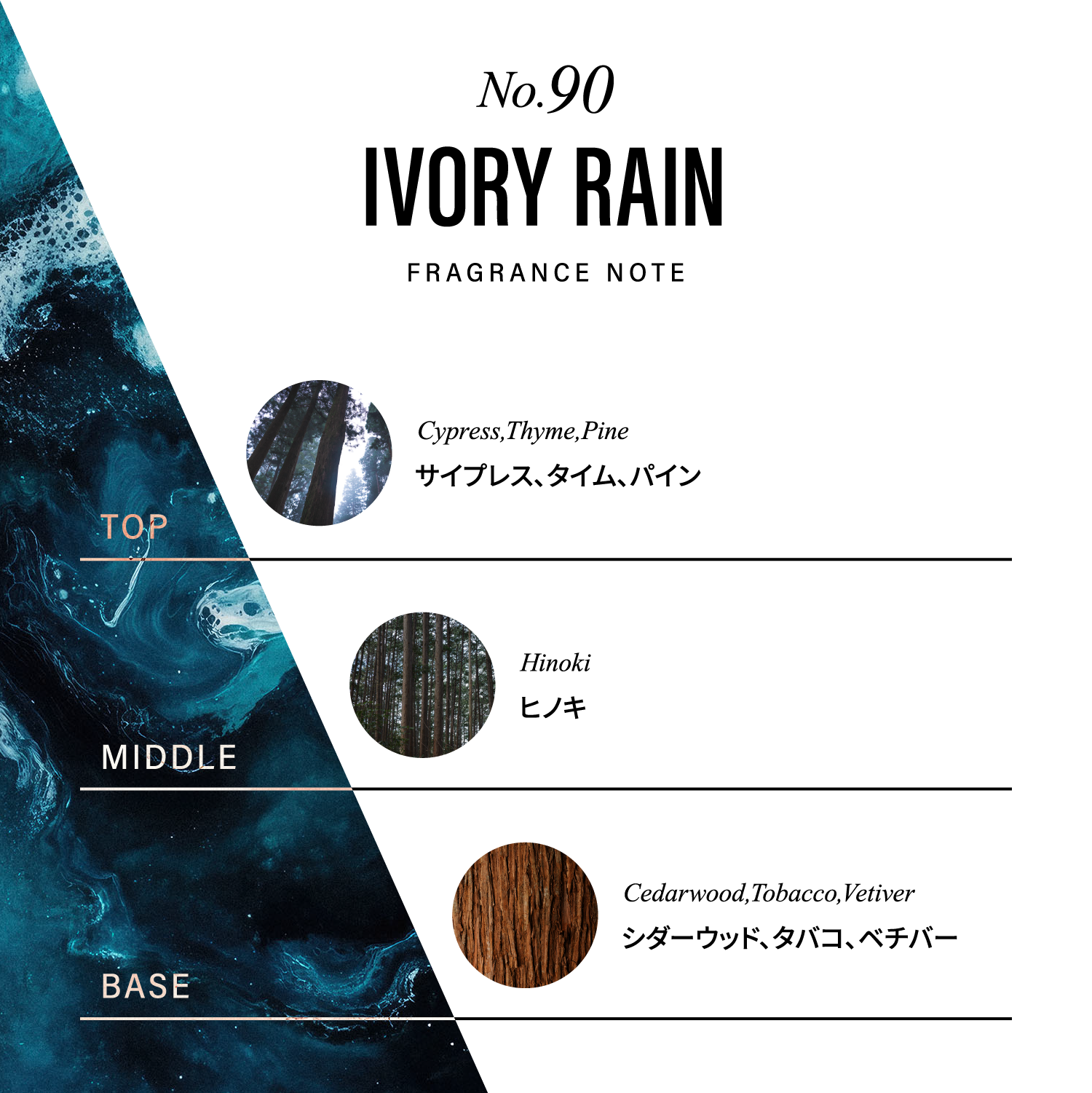 清涼感とスモーキーさを持つグリーンハーブと森林の空気感が立ち上がる。