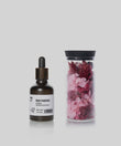 デザイナーの旅の記憶を閉じ込めたプリザーブドフラワーグラスに、情景を香りで描き出すルームフレグランスオイルを添えた特別なセット。